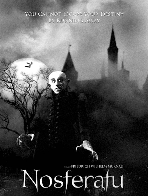 Афиша к немому фильму Фридриха Вильгельма Мурнау «Носферату. Симфония ужаса» Слоган: «Вы не сможете уйти от судьбы, попытавшись сбежать»