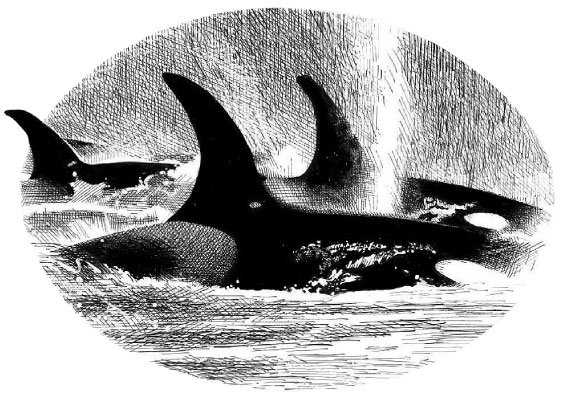 Подплыв ближе, Волк услышал в глубине странные, часто повторяющиеся щелчки и протяжный вибрирующий вой. Он узнал этот вой, когда-то уже его слышал. Это были большие черно-белые рыбы, которые охотились стаями. Как волки. Они были умными, волки Мокрой.