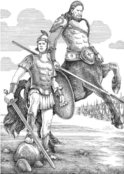 – Арминакт и не мог, он в это время пытался нашу полусотню к холму отвести… А получилось так – когда в первой же схватке удалось «краснолапого» прикончить, мы было решили, что белобрысые прыти-то поубавят, остановятся, мы их на топкое место и загоним. Только не срослось. То ли вёл их кто другой, то ли всё у них навыворот, но озверели они совсем и так врезали, что коняги наши и те сплоховали, да… Не все, но нам хватило. Я с краю стоял, ну кентавры нас, удирая, и задели, человек пять с ног сшибли. Меня тоже. Пока поднялся, фаланга отступила, а белобрысые уже близко… Хорошо, Пифар, вожак, последним шёл, вот я ему на спину и сиганул. Коняги такого не любят, но тут не до ссор было. Он за своими помчался, чтобы вернуть, ну а мне куда деваться, держусь. А тут белобрысый сбоку, и откуда только взялся?.. Меня в расчёт не принял, на Пифара копьём нацелился. Ну, я с ходу со спины Пифаровой и прыгнул. Повезло, как раз в жизни везёт, – мечом прямо в горло попал. Копьё подхватил, Пифар ржёт, довольный, сам меня на спину забросил, и вперёд.
