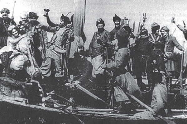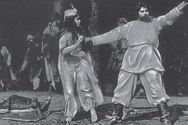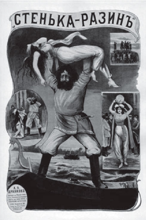 Грубо загримированные, с картонными кинжалами и кубками в руках, актеры Нардома отчаянно жестикулировали и вращали глазами, часто заглядывая в глазок киноаппарата. Неумелость режиссуры сказывалась сразу. В ряженой толпе разбойников на атаманской ладье терялись никак не высвеченные центральные фигуры: бородатый и толстый Степан Разин и дебелая княжна в шальварах. Артист Евгений Петров-Краевский утвердится в кино на амплуа атаманов, сыграет еще не раз Стеньку, Ермака, Ваську Уса и других знаменитых разбойников.