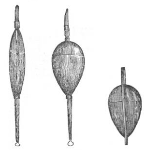 Рис. 2. Щучьи поплавки; слева – разрезной поплавок (из книги Л. П. Сабанеева «Рыбы России»)