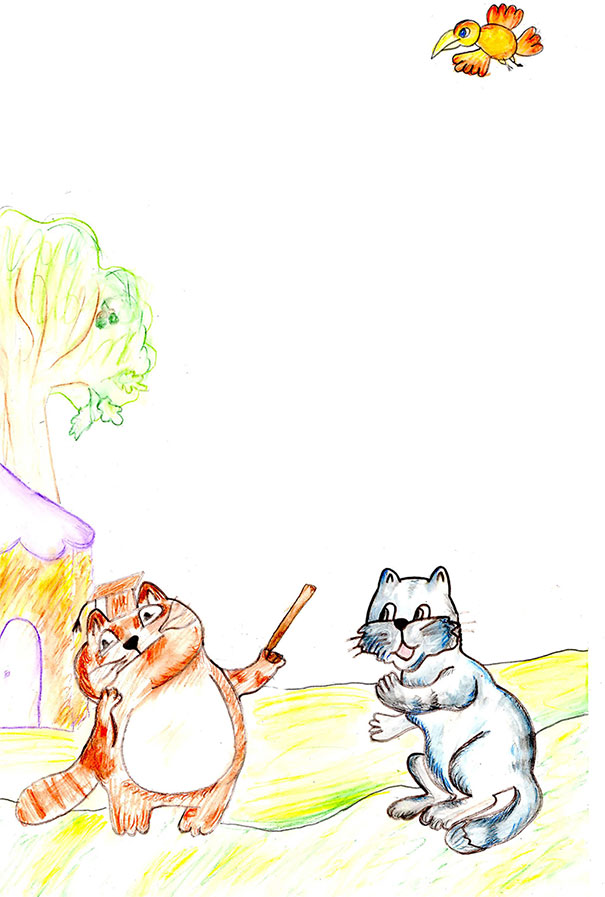 Достигнув, наконец, спасительного берега, серый кот двинулся дальше и набрел на небольшую рощицу. Он шел и шел, потом немного отдыхал, затем снова шел, пока не встретил свою соплеменницу, рыжую кошку. «Здравствуй, сестра, мне, простому серому коту, нужно отыскать имя, которое расскажет всем, кто я есть. Можно ли рассчитывать на твою помощь?» «Нет», – быстро ответила кошка. «Но почему?» – опешил серый кот. «Ясное дело, потому что мое имя – Та, Кто Всегда Говорит Нет». И как ни старался серый кот, ничего, кроме слова «нет», не добился он от рыжей кошки.