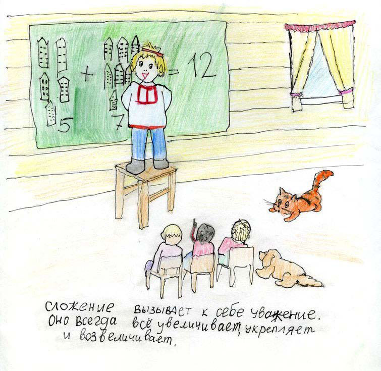 – Дядя Федь, ты садись с ребятами. Сегодня мы начнём разговор про сложение.