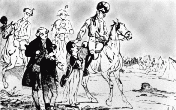По опушке вилась одинокая тропа. И вдруг впереди, словно сквозь туман, Денис увидел всадников на конях. Вскорости казак пробежал, крича: «Скачет! Скачет!»