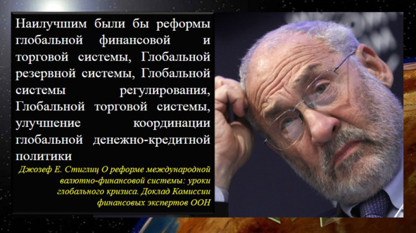 Принимая во внимание, что привязка мировой резервной валюты к экономике одной, даже самой мощной державы, делает эту страну заложником перед всем мировым экономическим сообществом, а сообщество – зависимым от проблем одной страны;