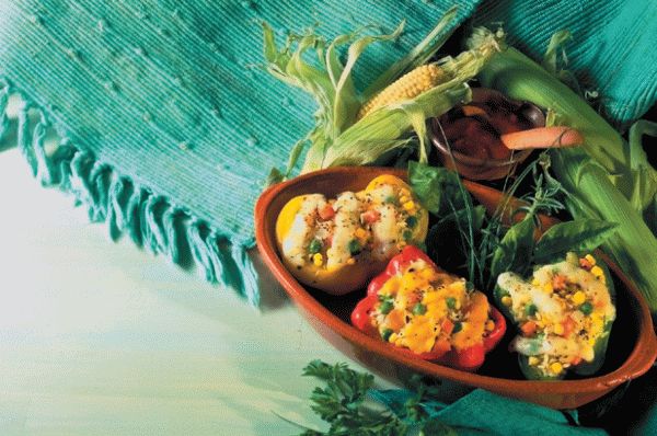 Мясо смешать с кукурузой, болгарским перцем, луком, чесноком и петрушкой. Посолить, поперчить, добавить растительное масло и кетчуп, перемешать.