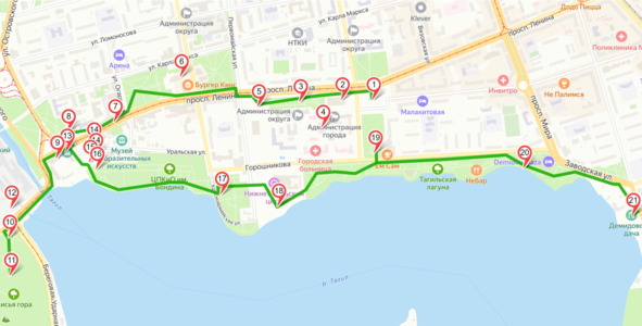 Посмотреть ее подробный маршрут можно на сайте: https://malahitline.ru/. А если вы хотите послушать аудиогид по достопримечательностям, расположенным на ней, то зайдите сюда: https://izi.travel/ru/8ad3-malahitovaya-liniya/ru.