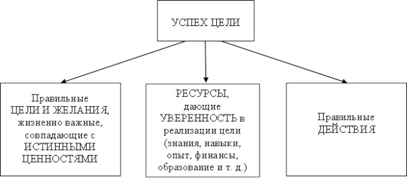 Поэтому для скорейшей и успешной реализации наших целей и желаний нужны следующие три фактора (схема 6):