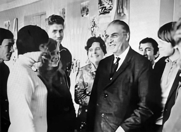 Христофор Артемьевич Арустамов, заведующий кафедрой начертательной геометрии и черчения МВТУ им. Н. Э. Баумана, среди студентов. Фотография из социальных сетей.