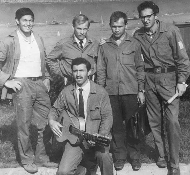 Мы сфотографировались на фоне морского пейзажа, раскинувшегося во всю ширину и глубину кадра. Вдалеке просматриваются контуры боевых кораблей. Студотрядовская форма слегка помята, накануне мы проехали поездом свыше двухсот километров. Снимок вполне четкий, лица спокойные, рассудительные, прямодушные и сдержанные. Я на этой фотографии – крайний слева, ровесник младшей дочери моего сына. В руке у Бугра портфель, в нем документация на выполненные строительно-монтажные работы, они с Сан Санычем, крайний справа, мастера отряда. От их умения и квалификации зависел результат труда всего студенческого коллектива. Володя Скопин, он слева от меня, отвечал за материально-техническое и продовольственное обеспечение. Ему не было равных в переговорах, так же как и не было невыполнимых поручений для него, он всегда при галстуке.