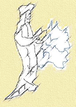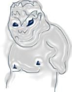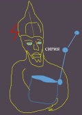 Странный человек, как йети. Над его головой находится Байкал. Видны два круглых глаза. Написано «Храм Шивы. Шикра (птица)». На животе нарисована в профиль птица с круглым глазом и гребнем. Если смотреть рельеф Сибири от Камчатки, то Сибирь приходится на грудь и живот получеловека-полульва: