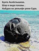 Шар очень напоминает странную голову. Он точно соответствует рельефу возле реки Сура, название которой написано на шаре. К мегалитам можно отнести шары на Земле Франца-Иосифа: все видели их фотографии. Увеличивая контрастность снимков, можно увидеть надписи на них. На них написано: «Ачира (скипетр). Возлюбленный богом Кири (Кирилл). Рай. Тартарии акрон (время). Аркаим – ковчег. Авуй – святитель. Клоуна в Солнце зри. Зри храм Мари». Ачиры есть в Тюменской области. Здесь, на рельефе видим скипетр, лицо Кирилла и женский силуэт. Рядом находится Аркаим, тор Руси, в котором видна улыбающаяся мордочка черепахи. Клоуна, то есть смеющегося человека, можно увидеть на фотографиях Солнца НАСА. Поищите, такая есть. На рельефе возле Ачиры нарисован портрет Матери Ариев: