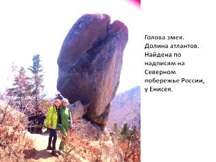 Он стоит у воды, меньше по размеру и больше похож на обезьяночеловека. Есть и четвёртый сфинкс на Земле – сфинкс перевала Гумбаши в Карачаево-Черкессии. Он напоминает лежащего льва с поднятой головой и тоже имеет надписи: «Рокот победы создал воин (акоп) Этруси (Руси). Его свет АТОН (единый бог солнца Эхнатона). Альгиеба (двойная звезда, в переводе означает «грива льва», Википедия). Величественная подпора огромного змея зарыла». И здесь говорится о том, что каменные изваяния закрывают выход змеям (драконам) на поверхность планеты. Культ Атона ввёл Эхнатон в 1368-1348 год до новой эры (Википедия). И снова здесь говорится о древней Руси.