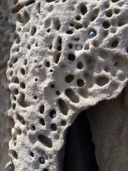 Желающим назвать это творением Природы, стоит обратить внимание на бусины в углублениях. Они перламутровые с голубым и зелёным оттенком. Мы их достали посмотреть, а потом вернули на место: