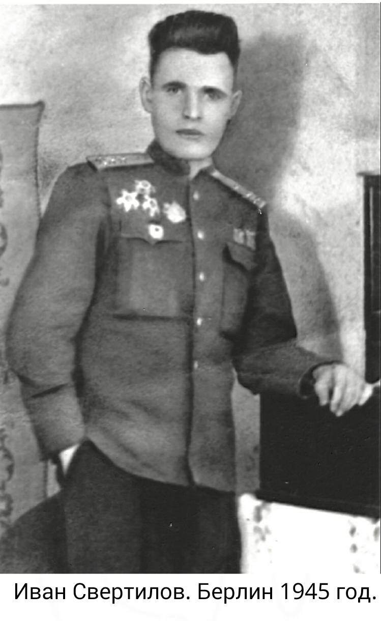 Здесь я и познакомился с командиром батареи 45-миллиметровых противотанковых пушек гвардии капитаном Иваном Алексеевичем Свертиловым.