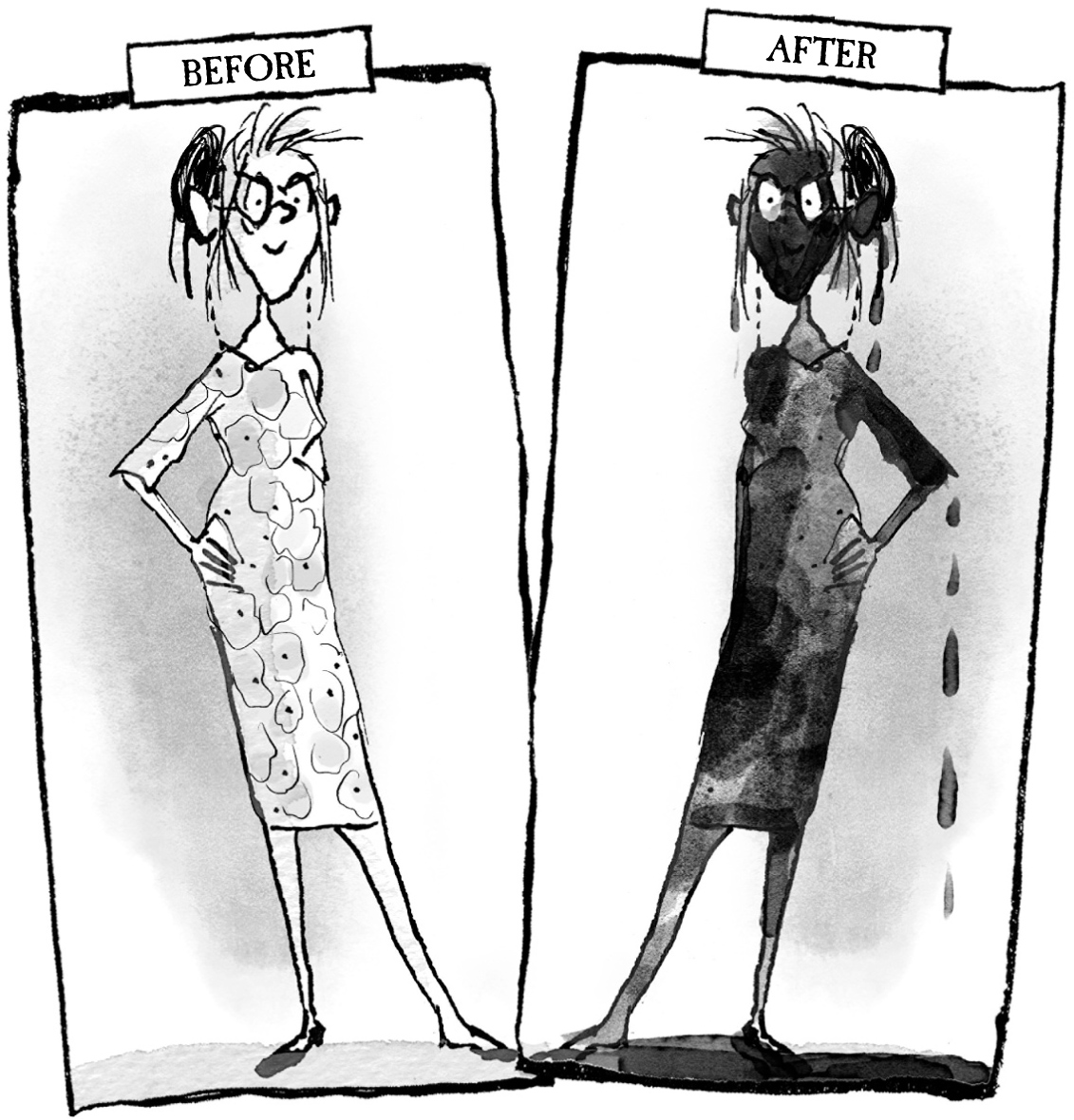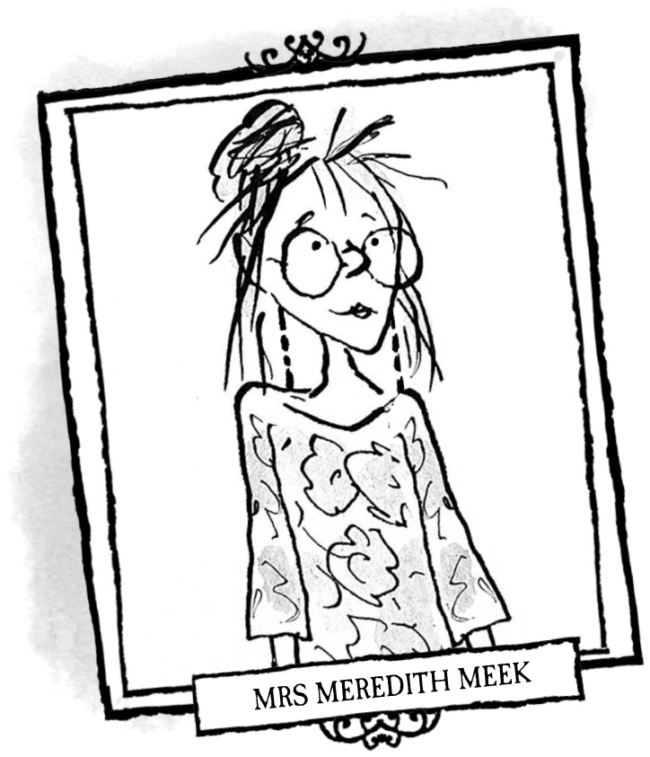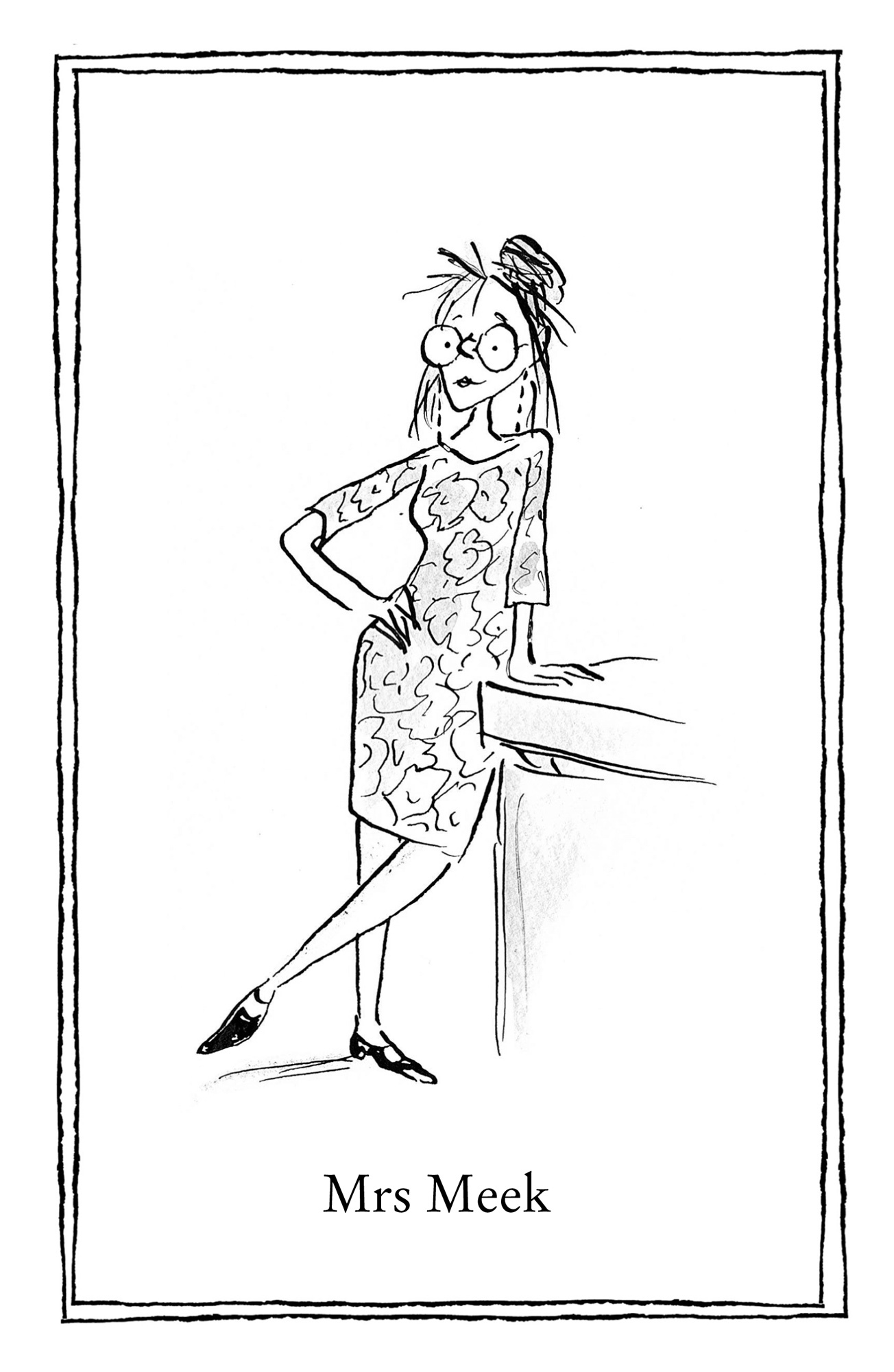 Mrs Meek dabbed at the chocolate milk. It was little use. The pink flowery dress was now a brown chocolatey mess.