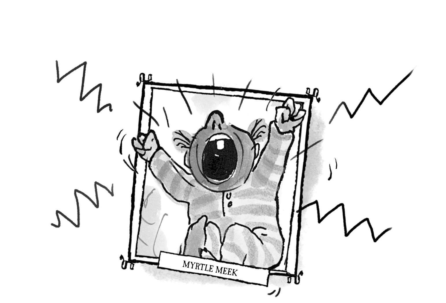 Being Meek by name and meek by nature, Maurice and Meredith didn’t dare stand up to their monster of a child. Whatever Baby Myrtle wanted, Baby Myrtle got. Her parents bought their baby daughter toys and toys and MORE toys, even though she would instantly smash them to pieces. BISH! BASH! BOSH!