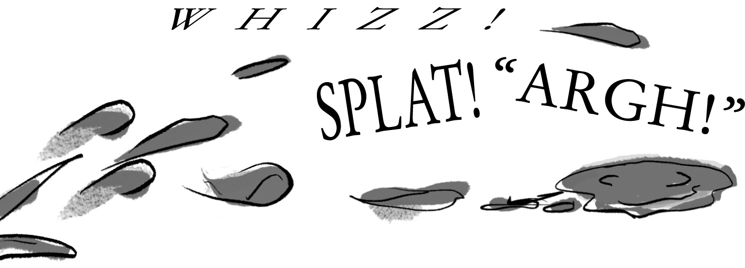 A bucket of chocolate mousse hit him – BANG! – on the top of his head.