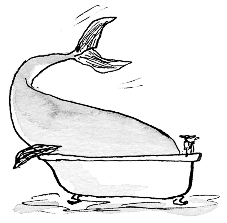 A life-sized blue-whale bath toy. When it went in the bath, all the water spilled out.