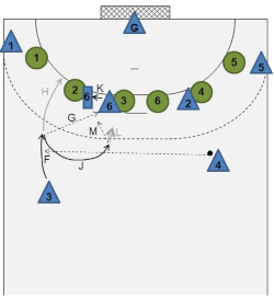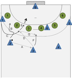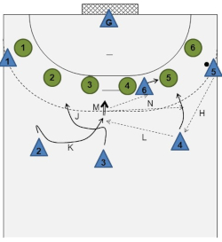 Crossing movements without the ball may be used against any defense system. The speed of attack can be increased considerably through the pass after the crossing movement. Moreover, the crossing without the ball may be used specifically to bring an offensively covered player back into play and into a good shooting position.
