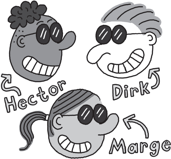 ‘Hector Frisbee, Dirk Measles and Marjorie Pinecone,’ she said.