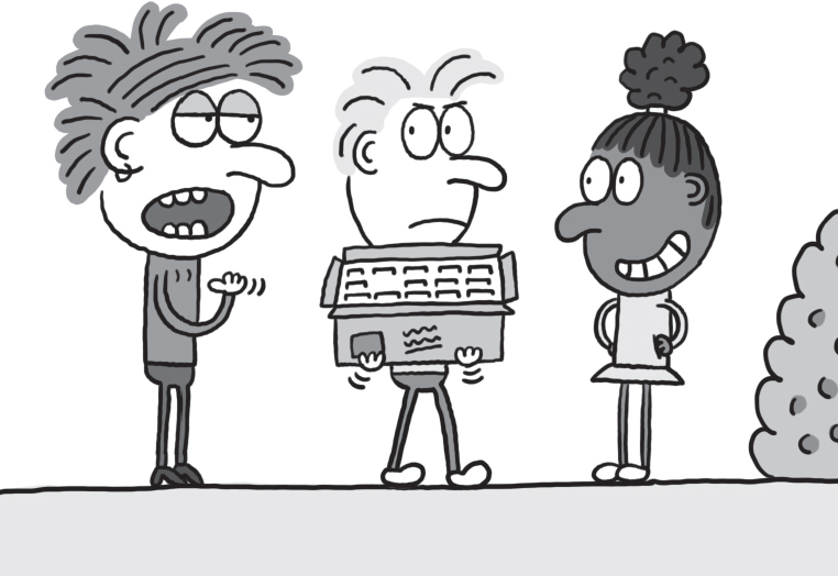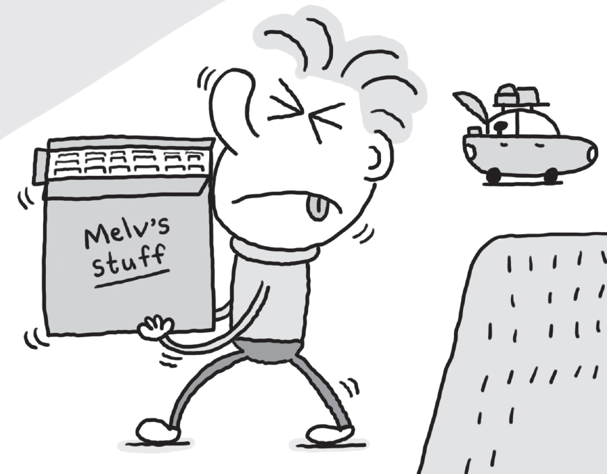Just then, the door opened and a really old-looking boy with a moustache walked in. ‘Evening, gang,’ he boomed in a deep voice, and Melvin realised he wasn’t a boy, he was their teacher.