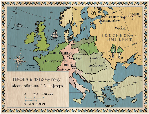 Неудивительно поэтому, что, как только Шеффер получил лицензию врача (1808), он вместе с молодой женой покинул насиженный, но небезопасный Вюрцбург4. И двинулся на европейский восток – подальше от пылающего континентального пожара. Туда, где его – как ценного специалиста – не могли бы призвать в действующую армию ни «наполеоновцы», ни их противники.