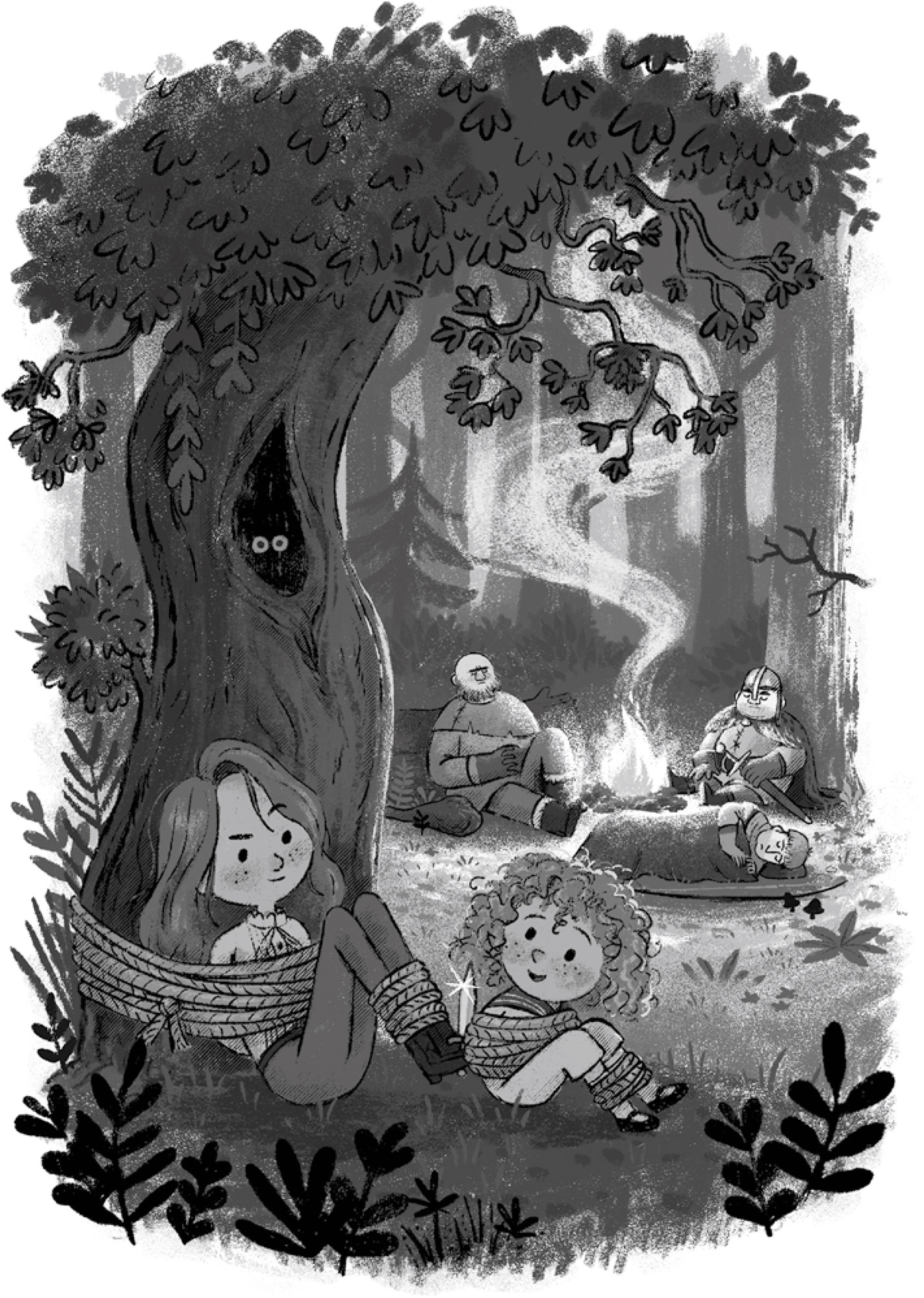 Up, up he went, and Florizella followed after him. They settled themselves into the crook of a branch many metres up, and watched the smoke streaming into the sky while the kidnappers slept below – none of them knowing that their hiding place had been betrayed by the Prince Courier bonfire and the Prince Courier peppermint trail.