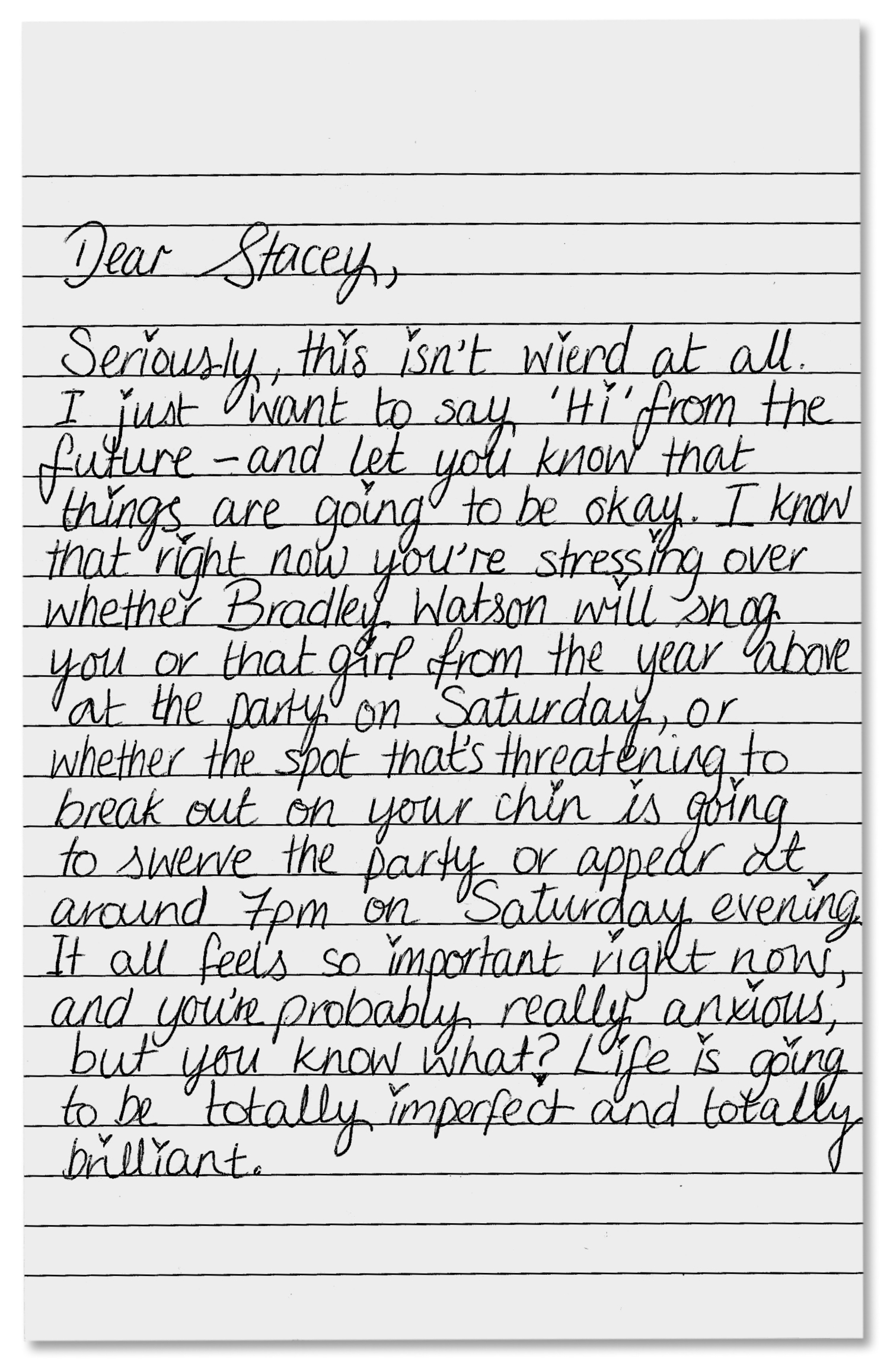 ‘There’s nothing to worry about, Stacey, I promise you. We’re here and you’re safe. Now go to sleep,’ Mum whispered, leaning over to kiss my forehead.