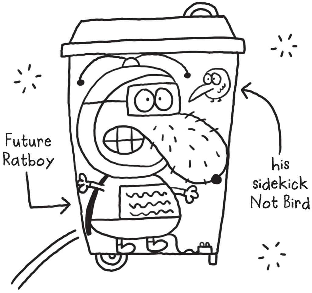 ‘Who do you think you are – Future Ratboy?’ sniggled Bunky, and I gave him a mini-salute, because in the Future Ratboy TV show, Ratboy gets zapped to the future inside his family’s bin.