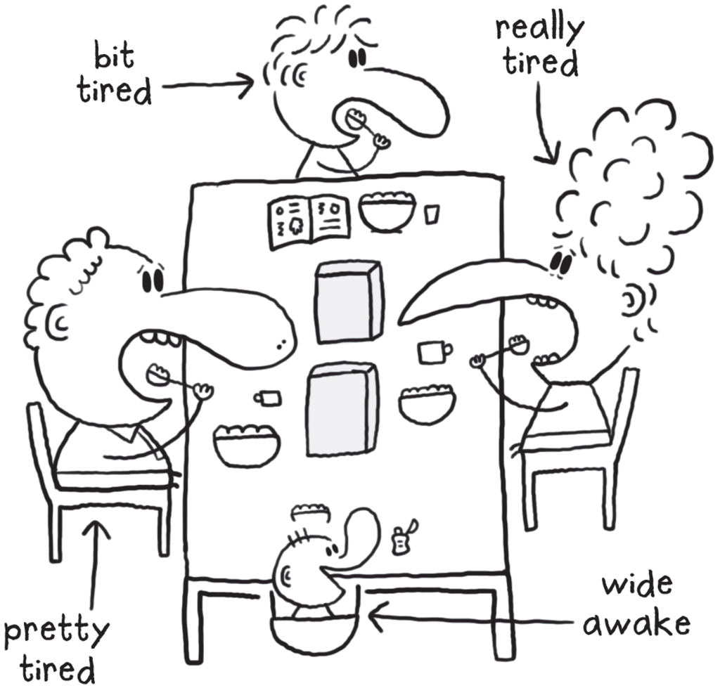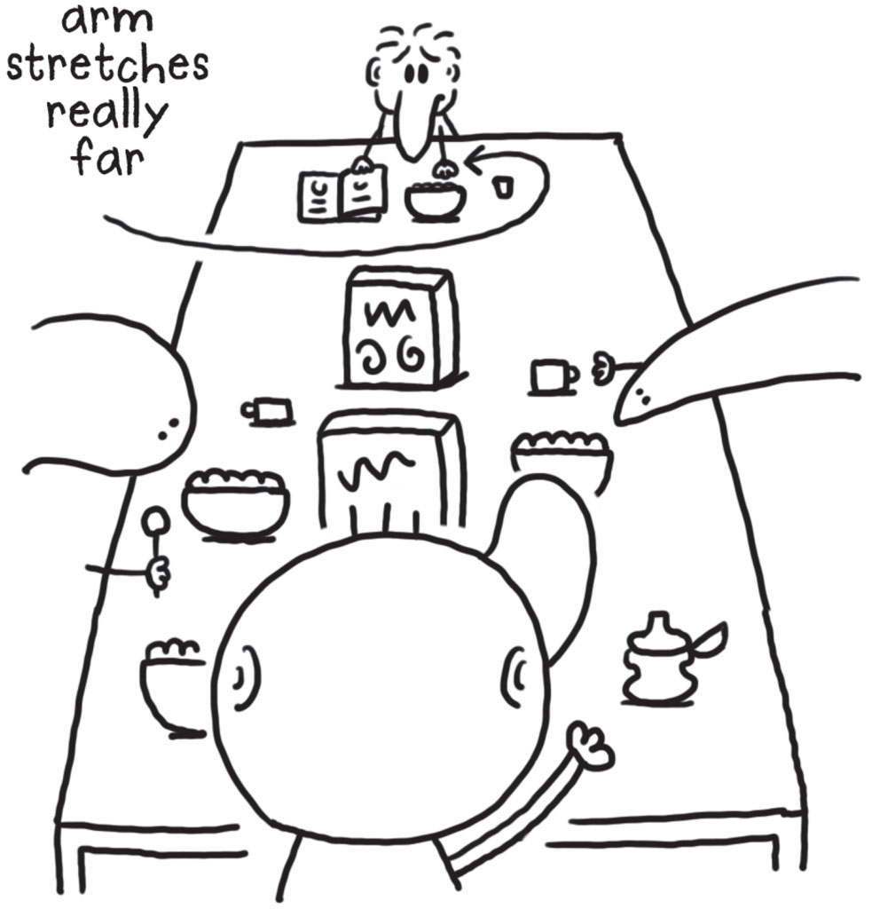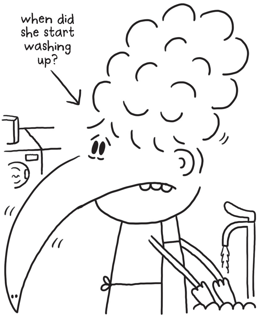 ‘Oops, late for work!’ said my dad, slurping the rest of his coffee. He kissed us all on the ends of our noses and headed off to his boring job.