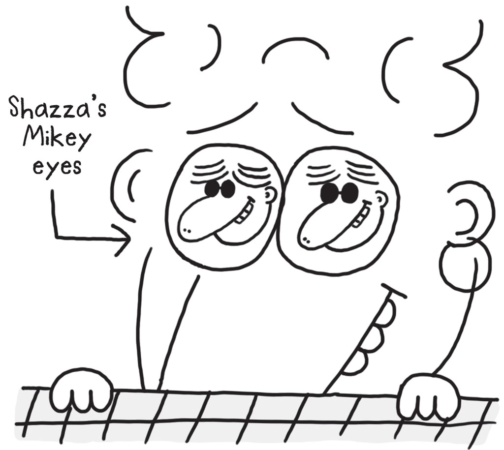 ‘That reminds me Shazza,’ I said, which is what I say when I want to change the subject. ‘I was just about to tell Bunky and Nancy something comperleeterly amazekeels.’