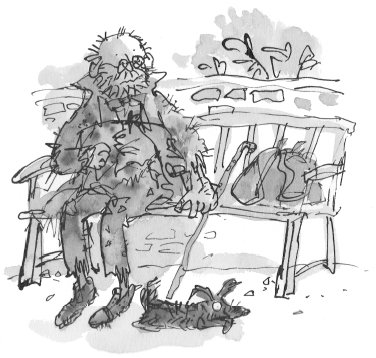 “What can I do for you, young lady?” said Mr Stink. His voice was unexpectedly posh. As no one had ever stopped to talk to him before, he stared slightly suspiciously at this plump little girl. Chloe was suddenly a bit frightened. Maybe it wasn’t such a good idea to talk to the old tramp after all. She had been working up to this moment for weeks, months even. This wasn’t how it had all played out in her head.