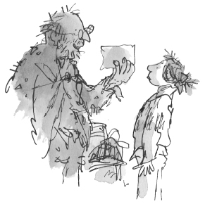 That’s his little black dog with him, the Duchess. The Duchess wasn’t any particular breed of dog, she was just a dog. She smelt too, but not as bad as Mr Stink. Nothing in the world really smelt as bad as him. Except his beard. His beard was full of old bits of egg and sausage and cheese that had fallen out of his mouth years before. It had never, ever been shampooed so it had its own special stink, even worse than his main one.