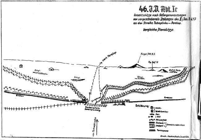 Панорамный рисунок из документов 46-й пд с изображением построенных Красной Армией препятствий (NARA).