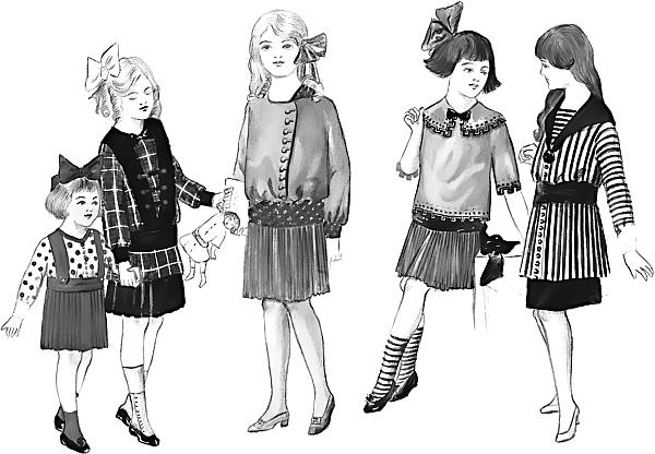 Мода для детей и девочек-подростков начала ХХ века. Рисунок из модного журнала