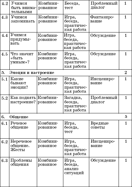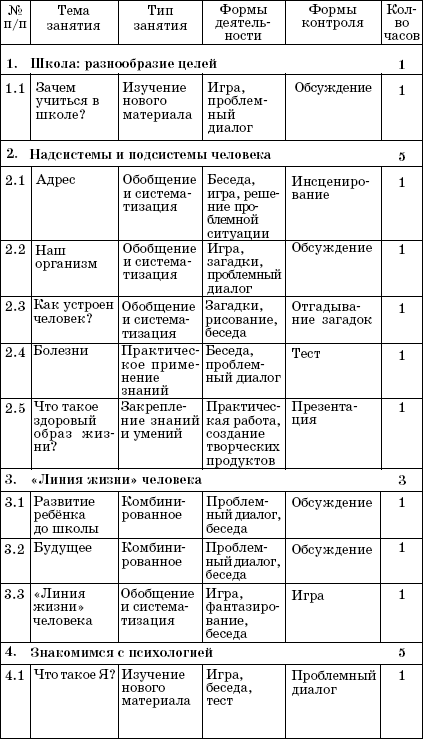 будут знать: о структуре адреса, об основных подсистемах организма, о необходимости здорового образа жизни, о возможности тренировки внимания и памяти, о способах поднятия настроения, о правилах бесконфликтного общения, об ошибочности поспешных выводов;