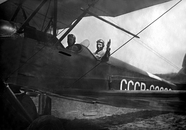 Учебный самолет У-2 конструкции Н.Поликарпова. Все будущие летчики 30-х годов должны были освоить этот биплан, прежде чем пересесть на более современные и скоростные самолеты. В задней кабине – учлет Юрий Афанасьев