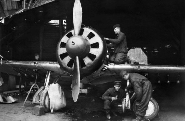 Техники готовят И-16 к вылету