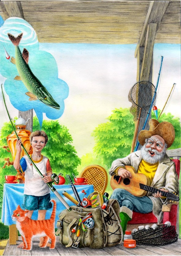 К нам приехал дед рыбак.Сел у самовараИ спросил: – Живёте как?Где у вас гитара?Песни пел, стихи читал,Все конфеты скушал,А потом к себе позвал,Посмотри, Петруша!Развязал большой рюкзак:– Принимай, внучок!Будешь ты теперь рыбак,Хоть и новичок!Лески, спиннинги, крючки,Блёсна и мормышки,Поплавки, как маячки,О рыбалке книжки…Завтра с дедом уплывёмМы в четыре ровно.Сомневаюсь, дотащу лиСвой улов огромный?!
