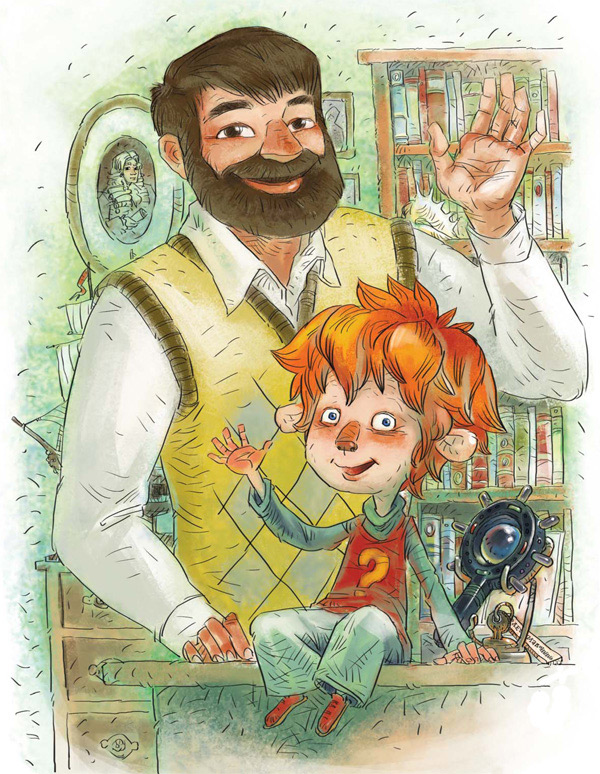 Здравствуйте, ребята! Меня зовут Чевостик. Я живу на книжной полке, в библиотеке у дяди Кузи. Не удивляйтесь, я небольшого роста, а нижняя полка в книжном шкафу дяди Кузи очень высокая и просторная, поэтому мне на ней хорошо и удобно. Какой я? Похож на обыкновенного мальчишку, волосы рыжие, характер весёлый. Дядя Кузя в шутку зовёт меня Чевочка с хвостиком. Но никакого хвоста у меня нет, зато есть ушки на макушке. Больше всего на свете я люблю узнавать новое, поэтому всё время задаю всякие вопросы дяде Кузе. О чём бы я ни спросил, он всё знает и мне рассказывает. Это потому, что дядя Кузя очень умный. Он прочитал много-много разных книг. А ещё мы с ним любим путешествовать! В путешествиях нам помогает времяскок. Это такой прибор, его дядя Кузя изобрёл. Набираешь на времяскоке место и время, куда хочешь попасть, раз, два – и уже там! Сегодня мы наверняка тоже куда-нибудь отправимся!