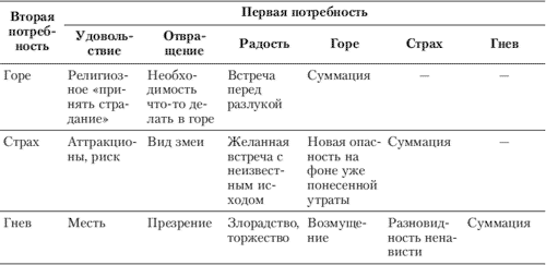 Таблица 4.3. Примеры ситуаций и смешанных эмоциональных состояний, возникающих на базе двух сосуществующих потребностей.