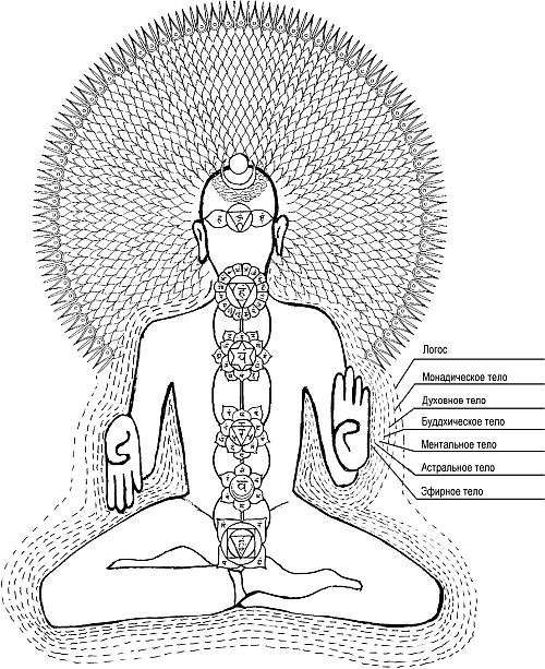 Такой ряд несколько нарушает привычный многим порядок. Однако я специально расположила их в такой последовательности, так как размер их (по образу матрешки) таков. Как мы можем видеть из рис. 4, эфирное тело чуть больше физического. Все остальные тела взаимопроникают друг в друга, пересекаются в некоторых местах, создавая более плотную границу, продолжаются вовне. Границы пересечения тел многие ощущают и считают, что это их реальное окончание.
