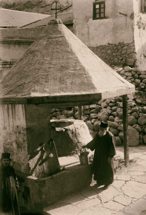 А в нескольких шагах от основания колокольни, под аркой – колодец Моисея. Бежав из Египта и проделав в одиночку тот путь, по которому он потом поведет народ израильский, он пришел в землю Мадиамскую и сел у колодца, потому что в пустыне колодец – это то место, где можно встретить людей. И Господь выслал ему навстречу семерых дочерей священника Мадиамского, пришедших напоить овец. Колодец еще тысячелетия на два древнее храма, и его глубинные подземные воды по трубам поступают в монастырь, напояя его, орошая и омывая, как ветхозаветные глубины питают тексты и образы Нового Завета.