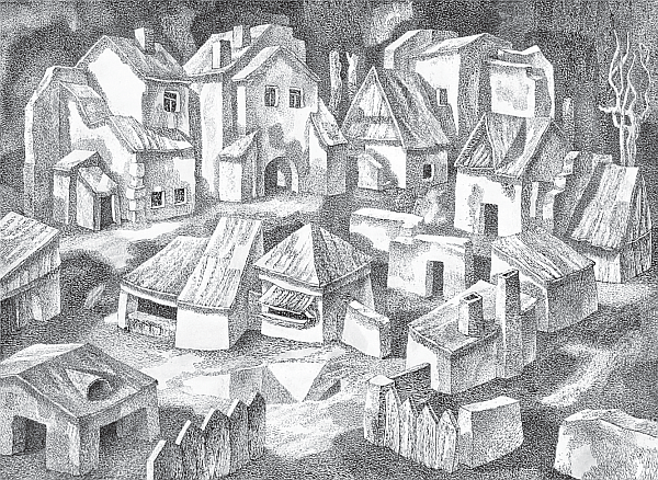 Местечко. Пустой город. 1970. Б., тушь, перо. 44x60