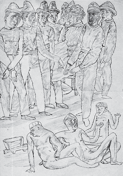 А голодные торопятся, спотыкаясь. Мокрый песок в дыры, натирает ноги, раздирает между пальцами кровавые ранки. Один садится, прокалывает иголкой водяной пузырь и наново обматывает ноги тряпкой, хорошенько отряхнувши. С ним поравнялись двое, он встал. Втроем догнали телегу. Он заговаривает об еде. Другой отвечает: