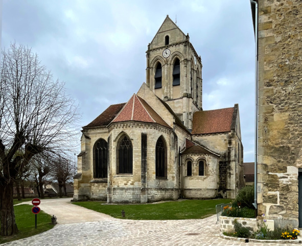 Мы запарковались недалеко от собора Notre-Dame de l’Assomption (церковь Успения Пресвятой Богородицы). Того самого, узнаваемого теперь благодаря Ван Гогу. В 12-м веке на этом месте стояла часовня, где был захоронен умерший после падения с лошади наследный принц, сын короля Людовика VI Толстого. Почему тут? Людовик помог местному епископу в борьбе с графом Гильомом VI отстоять право собственности на земли Овера. Прошло время, часовня была перестроена в храм, который сейчас находится в списке исторических памятников.
