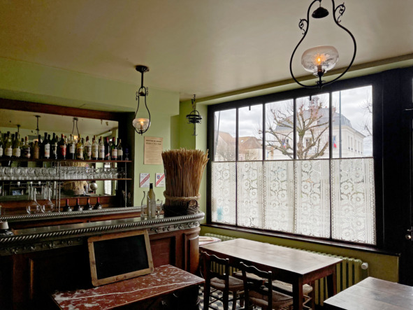 Мебели в комнате нет. Один стул посредине. И даже он занимает много места. Комната после Ван Гога не сдавалась – никто не хотел жить в ней после самоубийцы. Спустились в бар-столовую, где отпевали Винсента. Там сохранилась обстановка конца 19-го века. Зеленые стены, деревянные столы. Мебель добротная, семья Раву явно не бедствовала. Доктор Гаше называл это пансион дырой, но я бы так не сказал. «Дыры» – это клетушки в мансарде.