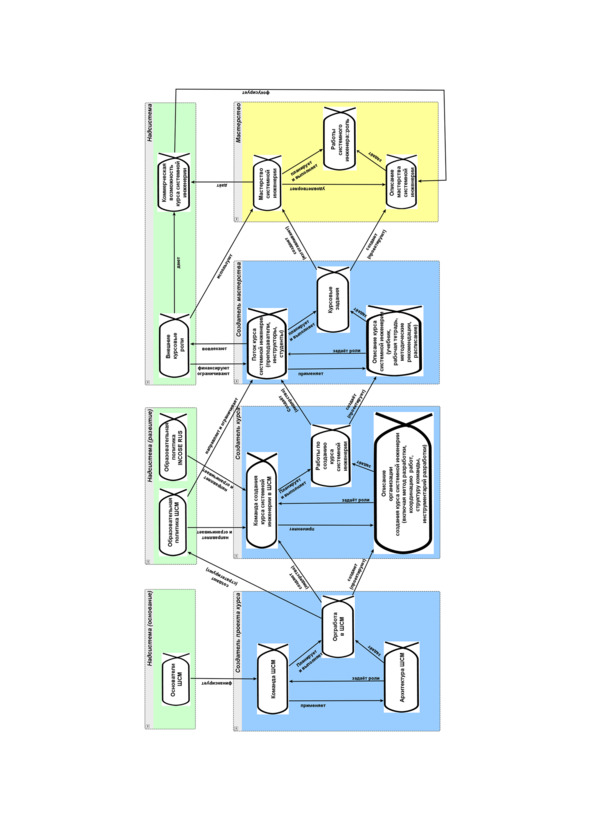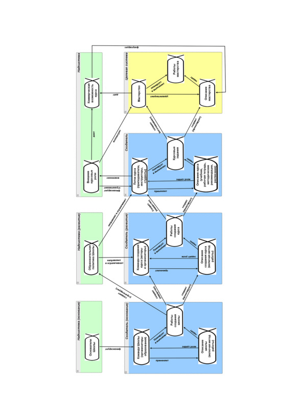 В этой схеме уже не абстрактное «воплощение системы», а конкретизированное «мастерство», не абстрактная «организация проекта», а «поток курса», не просто «описание, включающее метод работы в проекте», а «описание курса, включающее методические рекомендации».