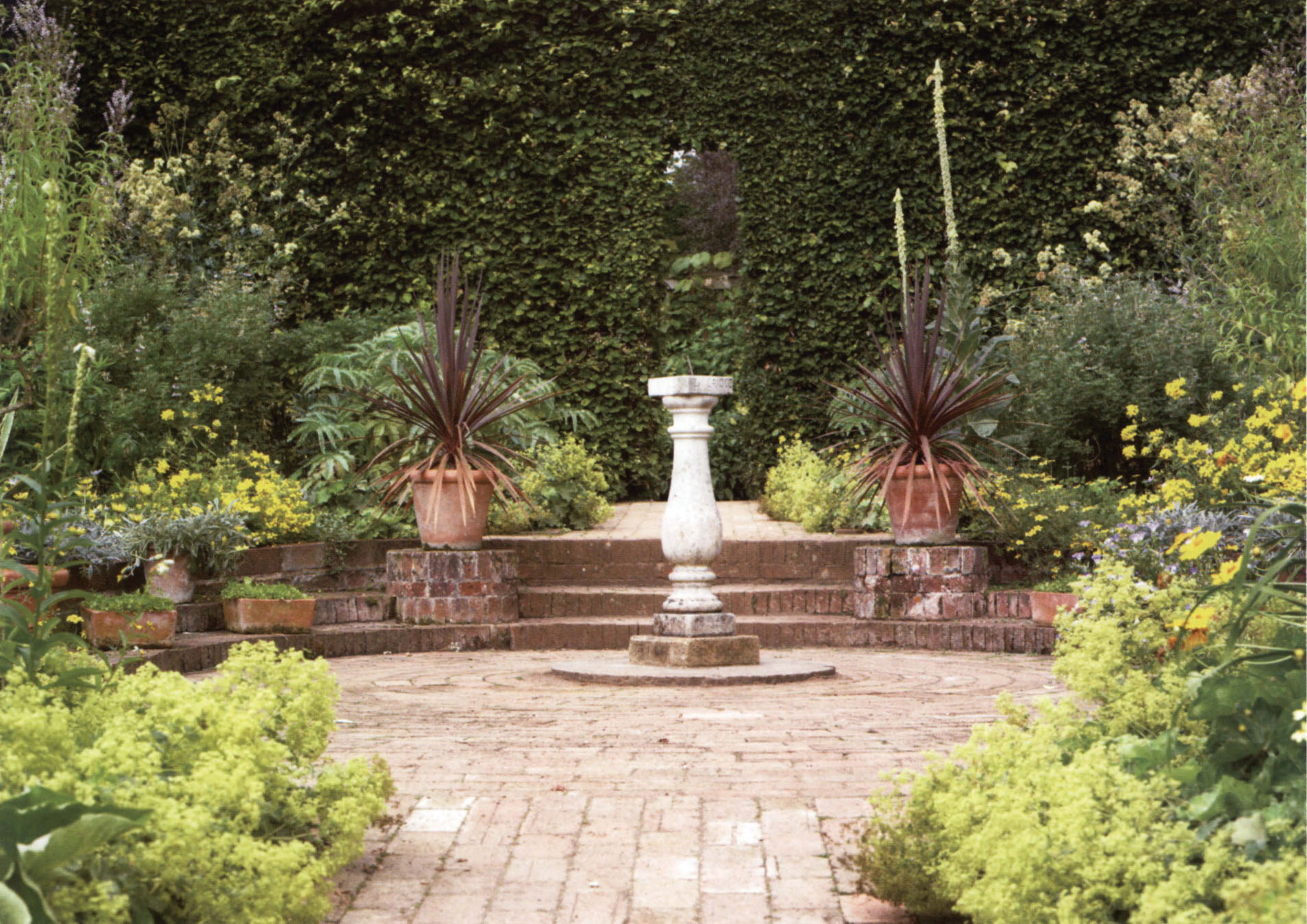 The use of symmetry and focal points creates a strong feeling of formality in this garden, even though the planting style in the rest of the area is more relaxed and flowing.
